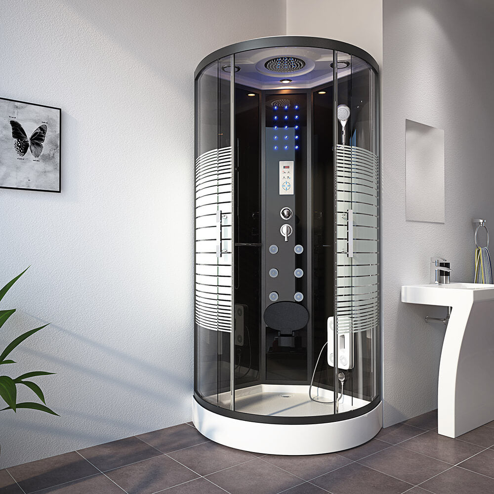 Dampfdusche mit Wasserfall Dampfsauna MANTA BLACK L, 100x100x220cm