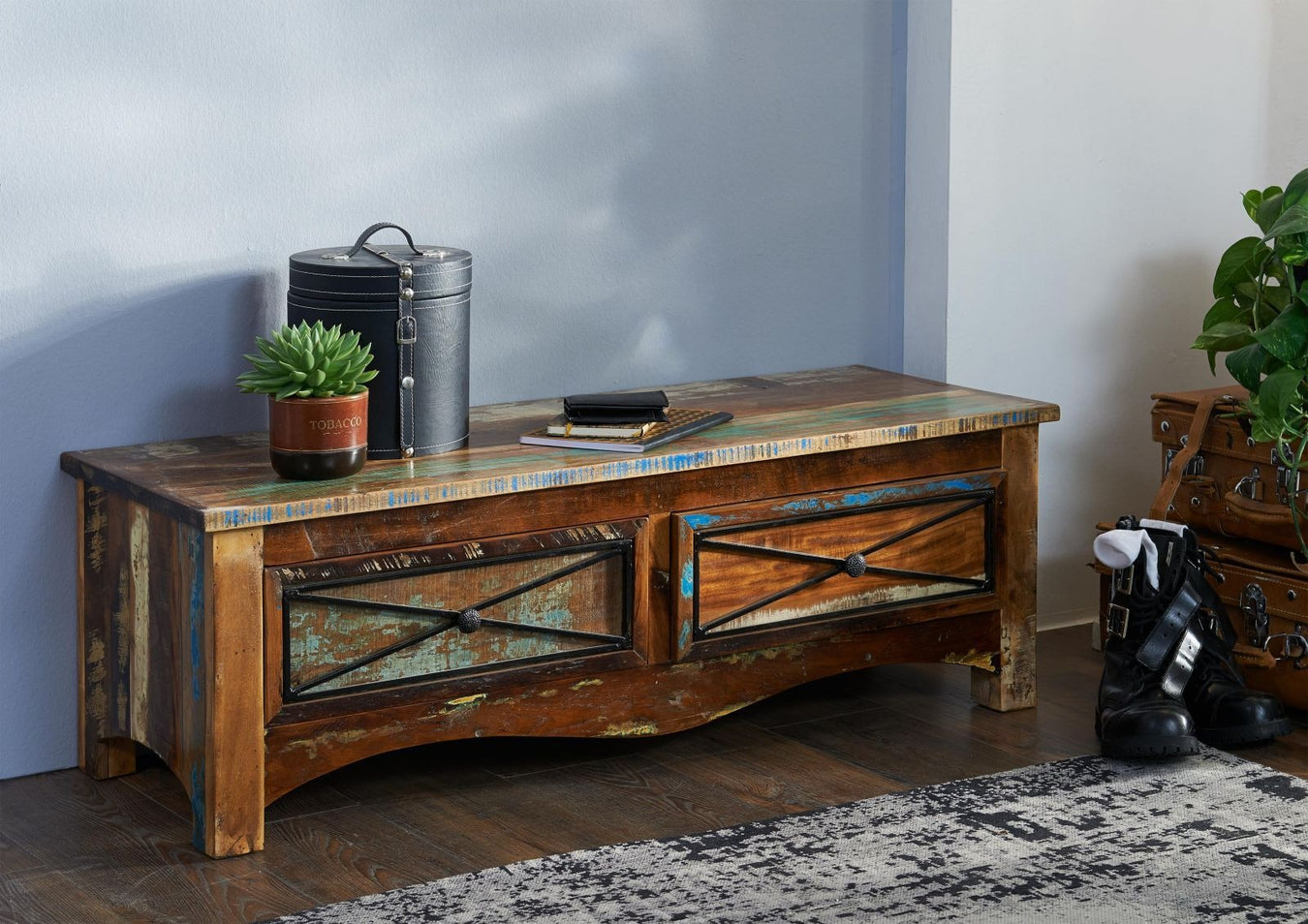 Wandgarderobe Altholz 66x8x13 mehrfarbig lackiert NATURE OF SPIRIT