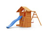 Spielturm 'SHARP' teakfarben inkl. Rutsche Blau, 493x258x254cm (BxTxH)