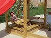 Unter dem Podest befindet sich ein grosszügiger Sandkasten und ein Picknick-Tisch mit zwei Bänken. -