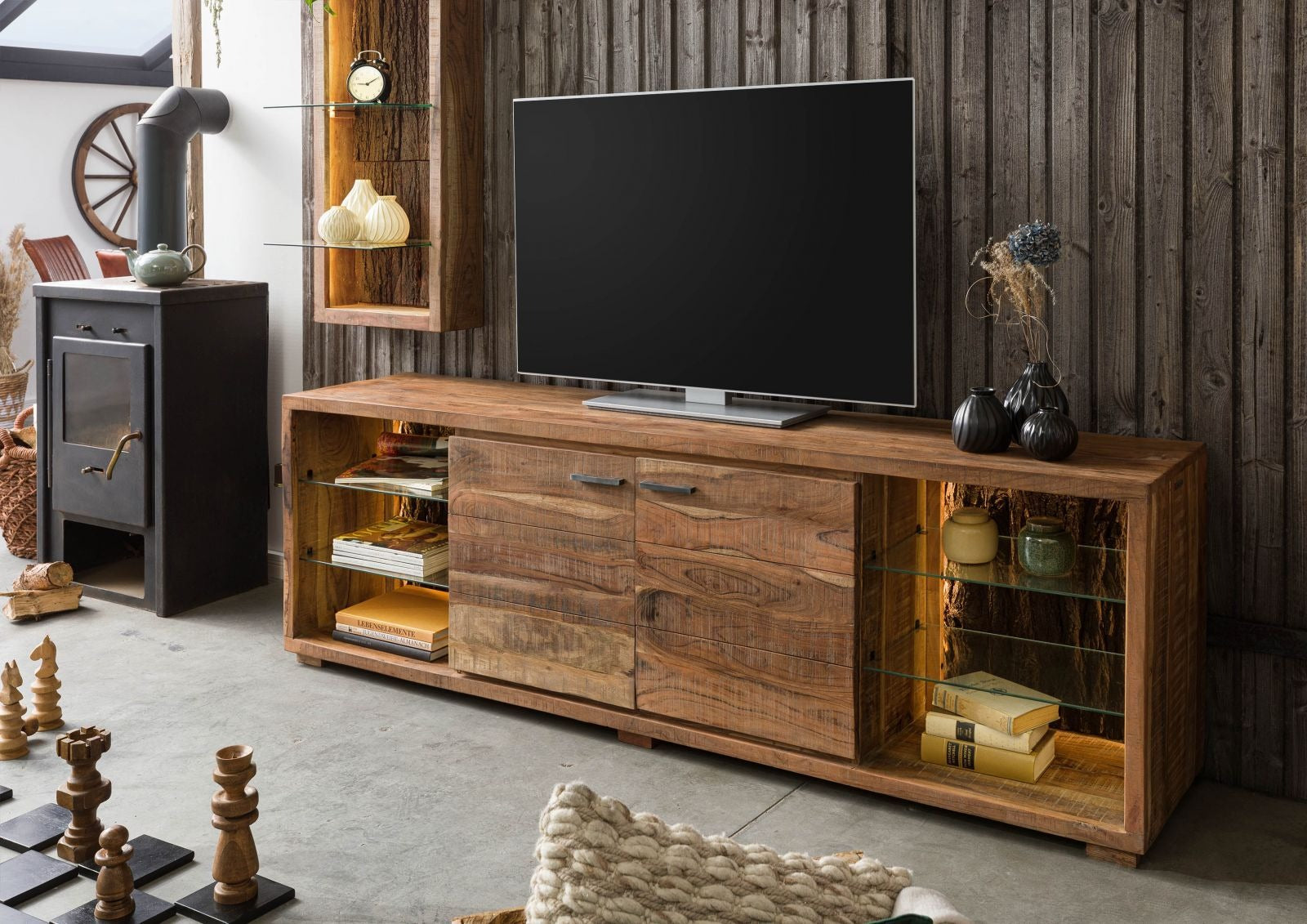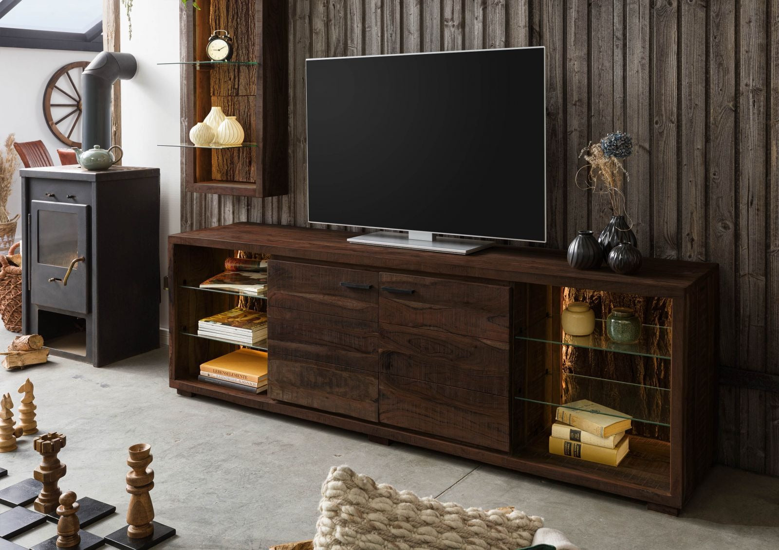 - breites TV-Board mit LED-Beleuchtung aus massivem Akazienholz