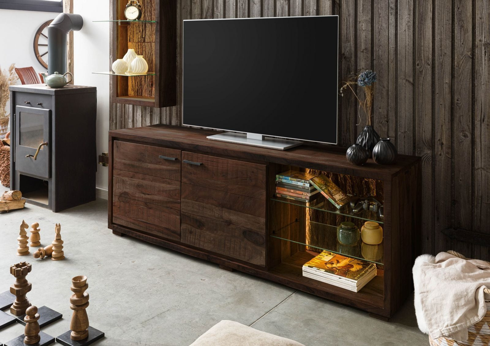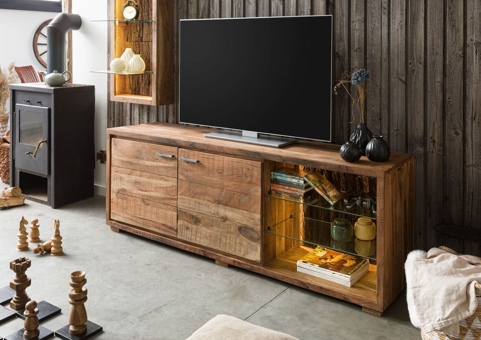 - modern-rustikales TV-Board mit LED-Beleuchtung aus vollmassiver Akazie