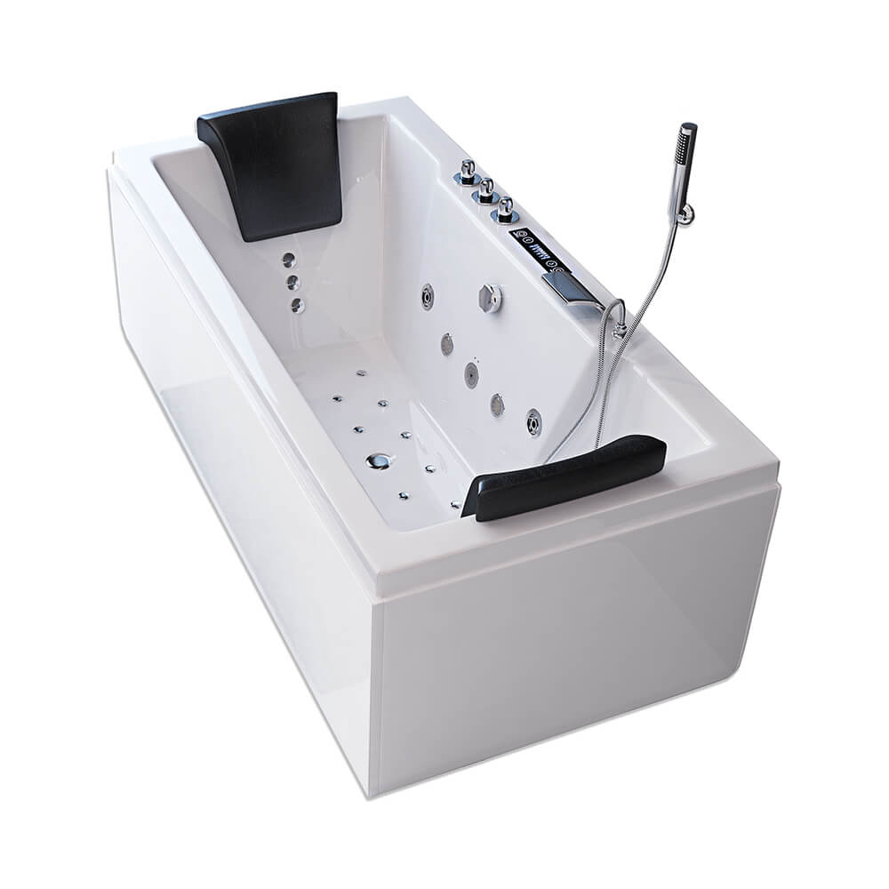 Nicht nur die Eigenschaften sind herausragend, sondern auch die Qualität ist für den angegebenen Preis mehr als fair. Besonders hervorzuheben sind das verstärkte, strahlend weisse ABS-Sanitäracryl, die hochwertigen Armaturen, die Aluminium-Rahmenkonstruktion und das computergesteuerte Touch-Bedienelement. Die höhenverstellbaren Füsse der Wanne passen sich fast jedem Untergrund an und ermöglichen eine einfache Montage an jedem Ort.