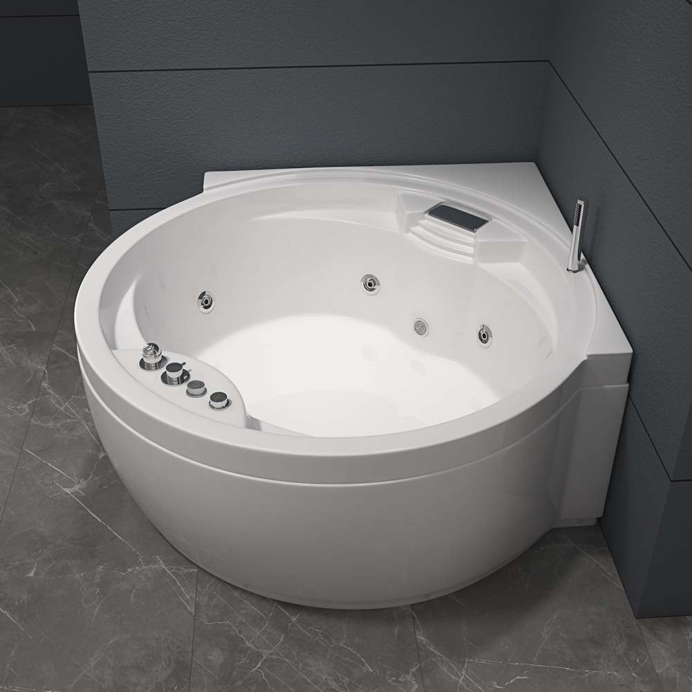 Das runde Design des Pools hebt sich durch seine Optik ab und bildet ein echtes Highlight. Das wechselnde LED-Farblicht und die 6 Whirlpooldüsen, welche sich in ihrer Richtung und Intensität verstellen lassen, werden dir darüber hinaus bei jeder Benutzung viel Badespaß bereiten. Neben den Pooldüsen lässt sich auch zusätzlich ein Wasserfall aktivieren. Die Befüllung des Pools erfolgt über die Düsensysteme bzw. wahlweise über die Handbrause. Selbstverständlich ist auch der gewöhnliche Gebrauch als normale Badewanne möglich. Mit diesem Whirlpool wird jedes Bad garantiert zu einem unvergleichlichen Erlebnis. Die Qualität wird dich überzeugen. Das strahlend weiße und verstärkte ABS-Sanitäracryl und die hochwertigen Armaturen sorgen dafür, dass der Pool dir über viele Jahre Freude bereiten wird. Das Acryl ist kratzfest und weist eine glatte Oberflächenstruktur auf. Schmutz - und Kalkablagerungen haben kaum Chancen sich abzulagern und die Wanne lässt sich außerdem mühelos reinigen.