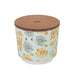 The Patterned Candle has three wicks and comes in a melamine vessel with a bamboo lid. The vessel is printed with the respective pattern of the scent and can be used after the candle has burned down.