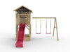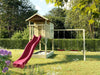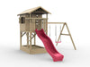Maison sur pilotis 'TREE' avec bac à sable, double balançoire et toboggan rose, 396x237x298cm (LxPxH)