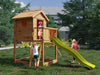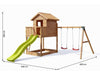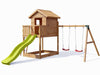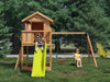 Tour de jeu 'UNIVERS S' couleur teck incl. balançoire et toboggan double jaune, 400x489x280cm (LxPxH)