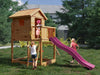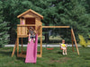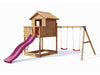 Tour de jeu 'UNIVERS S' incl. balançoire double couleur teck et toboggan rose, 400x489x280cm (LxPxH)