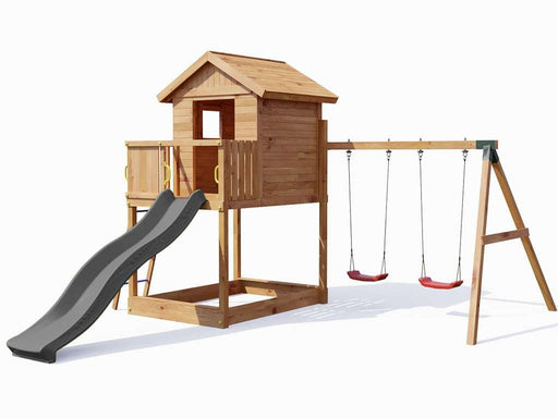 floki24Piccolo Casetta per un grande divertimento Torre gioco con scivolo, piattaforma, altalena doppia e scala Giochi e divertimentoQuesta torre d...