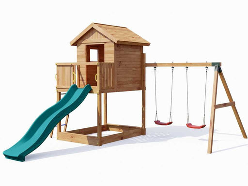 Torre da gioco 'SHARP' color teak incluso scivolo verde, 493x258x254 cm (LxPxA)