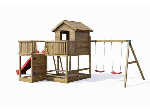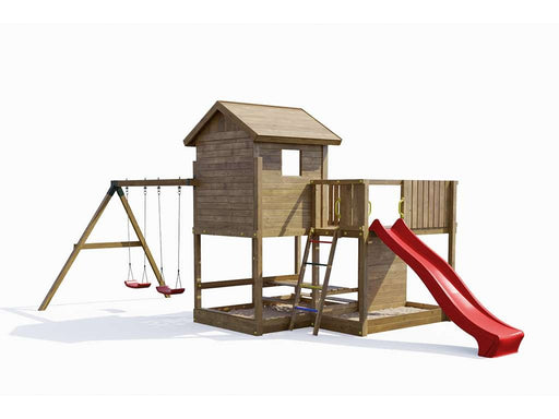Palafitta 'FABEL' grigio terra incl. scivolo rosso, 244x198x309 cm (LxPxA)