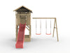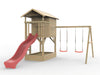 Palafitta 'TREE' con sabbiera, altalena doppia e scivolo rossa, 396x237x298 cm (LxPxA)