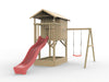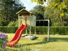 Palafitta 'TREE' con sabbiera, altalena singola e scivolo rossa, 316x237x298 cm (LxPxA)