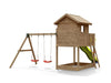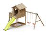 Torre gioco con scivolo, piattaforma, altalena doppia e scala