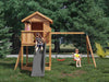 Spielturm 'UNIVERSE S' inkl. Doppelschaukel teakfarben & Rutsche Grau, 400x489x280cm (BxTxH)