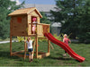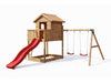 Spielturm mit Rutsche, Podest, Doppelschaukel und Leiter