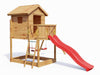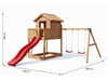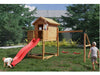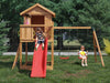 Spielturm 'UNIVERSE S' teakfarben inkl. Doppelschaukel & Rutsche Rot, 400x489x280cm (BxTxH)